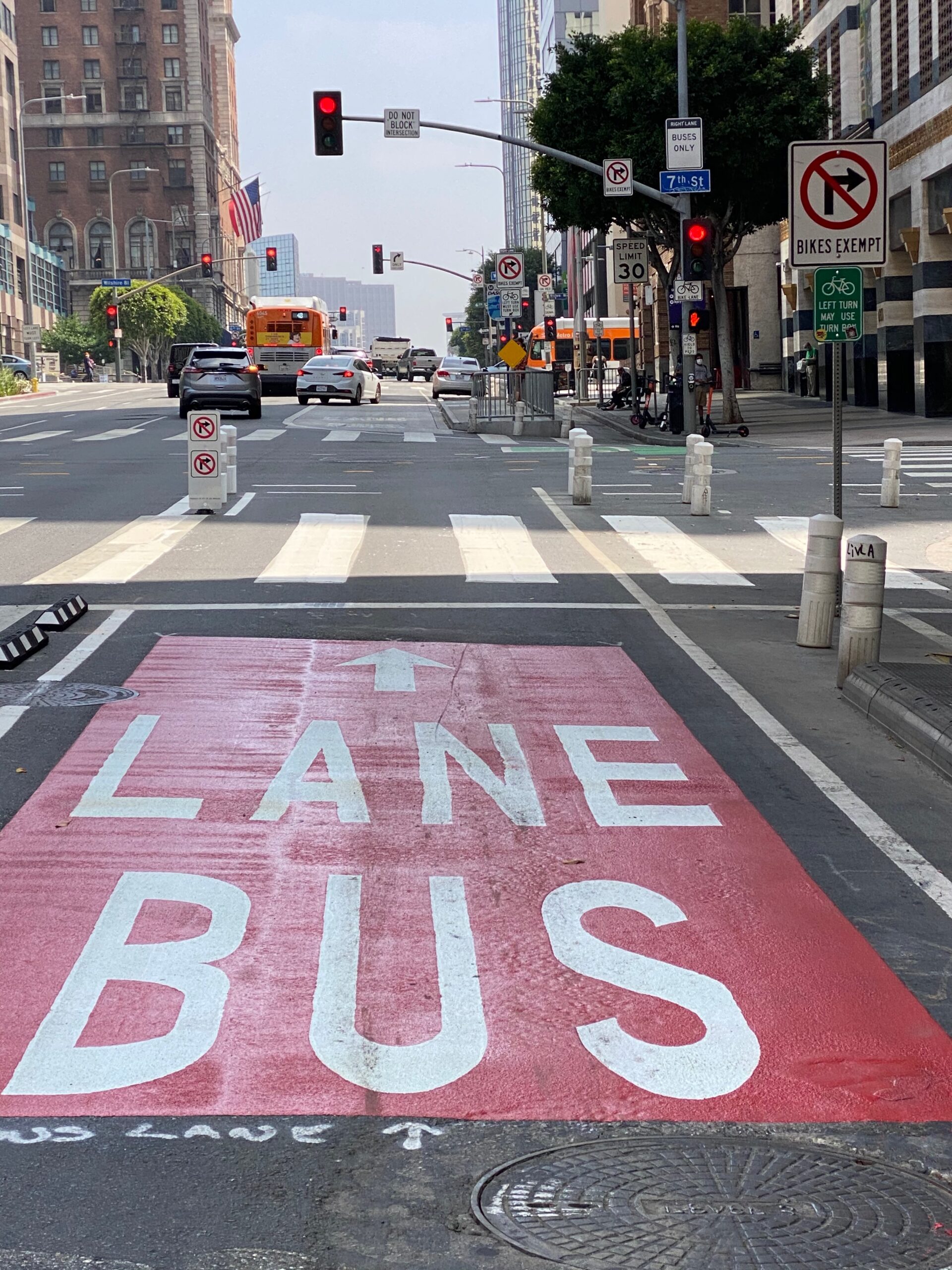 Unreliability is one of the most frustrating aspects of bus travel. With dedicated lanes, buses can move faster and it’s more likely they’ll arrive on schedule. Our Better Buses for LA workgroup played a key role in the City of LA’s implementation of more bus-only lanes. In 2019, there were only 31.6 lane miles of bus-only lanes. As of 2024, that number has grown to more than 55 lane miles.